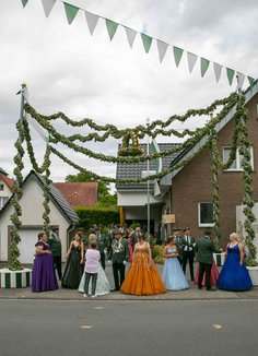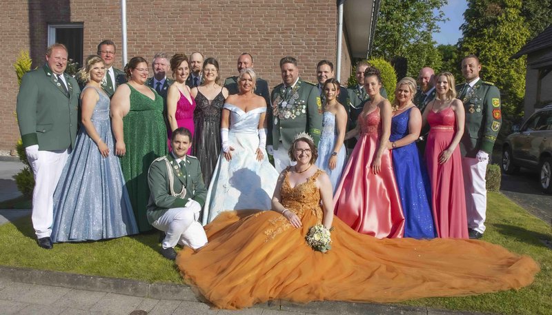 Der aktuelle Hofstaat von links: Franz und Katharina Gausemeier, Sven und Janina Konietzko, Falco und Ulrike Feith, Thomas und Melissa Niehüser, Christian Knepper und Angela Nippert, Jan Holtkötter und Amy Bode, Gerrit Nerenberg und Pia Eckernkemper, Jan und Natalie Nereberg, Stefan Eckernkemper und Jana Stamnitz