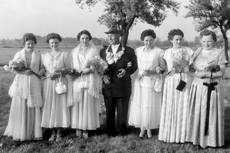 60-jähriges Jubelpaar Fritz Gerling (†) und Veronika Strunk (†) mit seinem Hofstaat