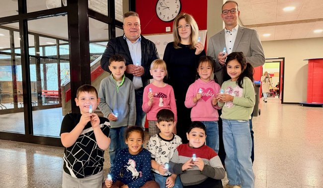 „Blinkis“ heißen die nützlichen Anhänger, die jetzt an die Erstklässler im Stadtgebiet von Lippstadt verteilt worden sind.