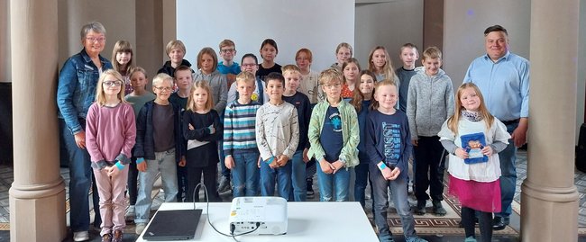Acht Wochen lang haben insgesamt 73 Kinder im Alter von sieben bis zwölf Jahren fleißig gelesen, um gemeinsam einen ganz besonderen Rekord aufzustellen: Einen Bücherturm zu erlesen, der so hoch ist wie die Nennrettungshöhe der großen Drehleiter der Feuerwehr – stolze 23 Meter.